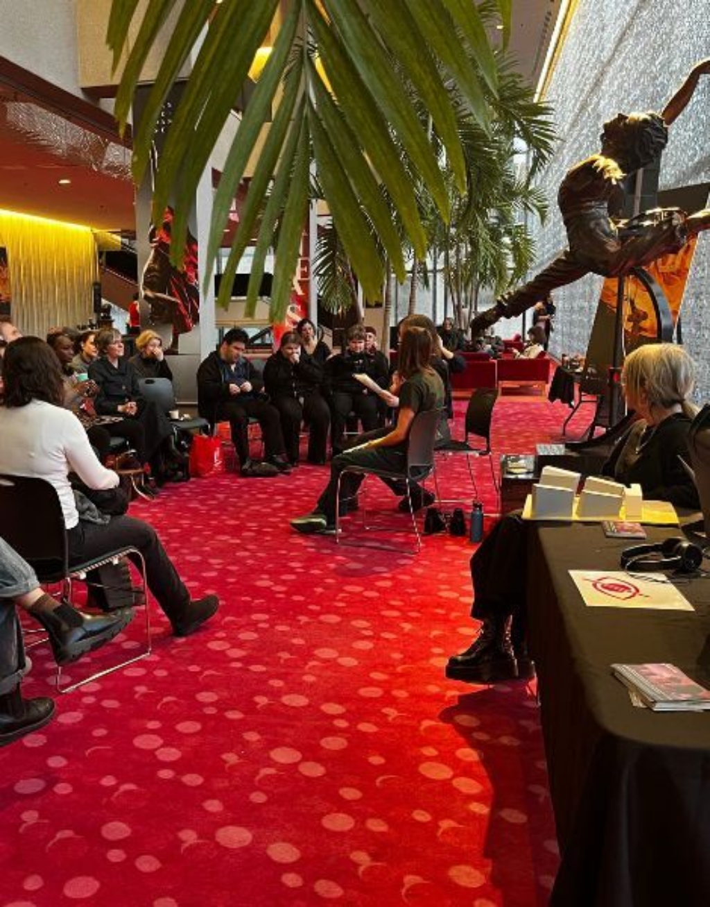 While the show starts at 8 PM, the experience begins an hour earlier for this group of blind and partially sighted spectators. Danse-Cité offers a full experience: a preparatory workshop followed by a post-show talk with the artists.