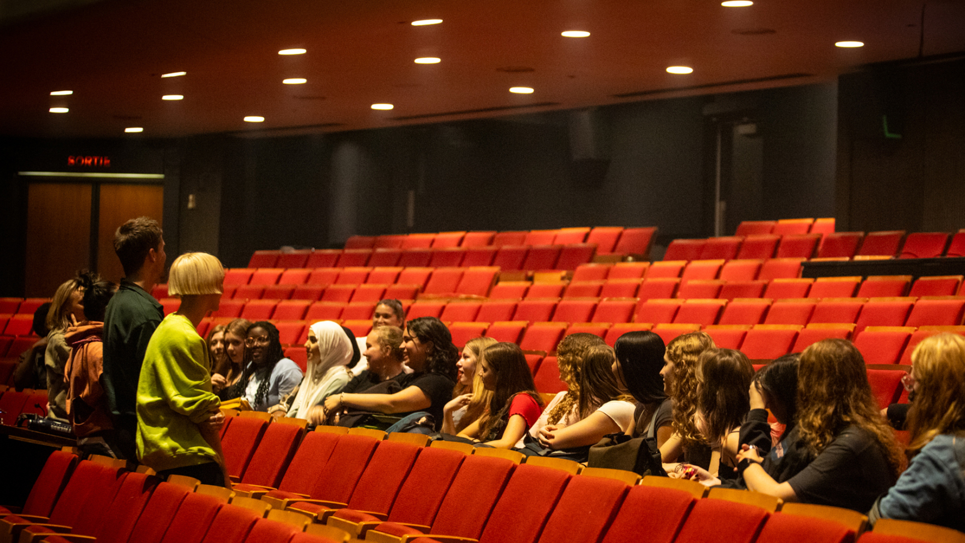 Students were welcomed to Théâtre Maisonneuve's studio by two of the company's performers, Max Revell and Elpida Skourou, to explore the animal gestures featured in the show and learn more about their artistic journey: a moment that was both breathtaking and inspiring!