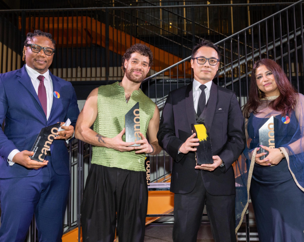 Sur l'image : Tobi Adesanya (ICC), Anthony Cavigny (Danse Danse), Hilen Wong (TELUS Communications Inc.), Pritha Ghosh (ICC).