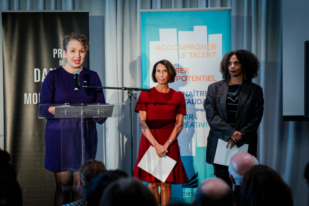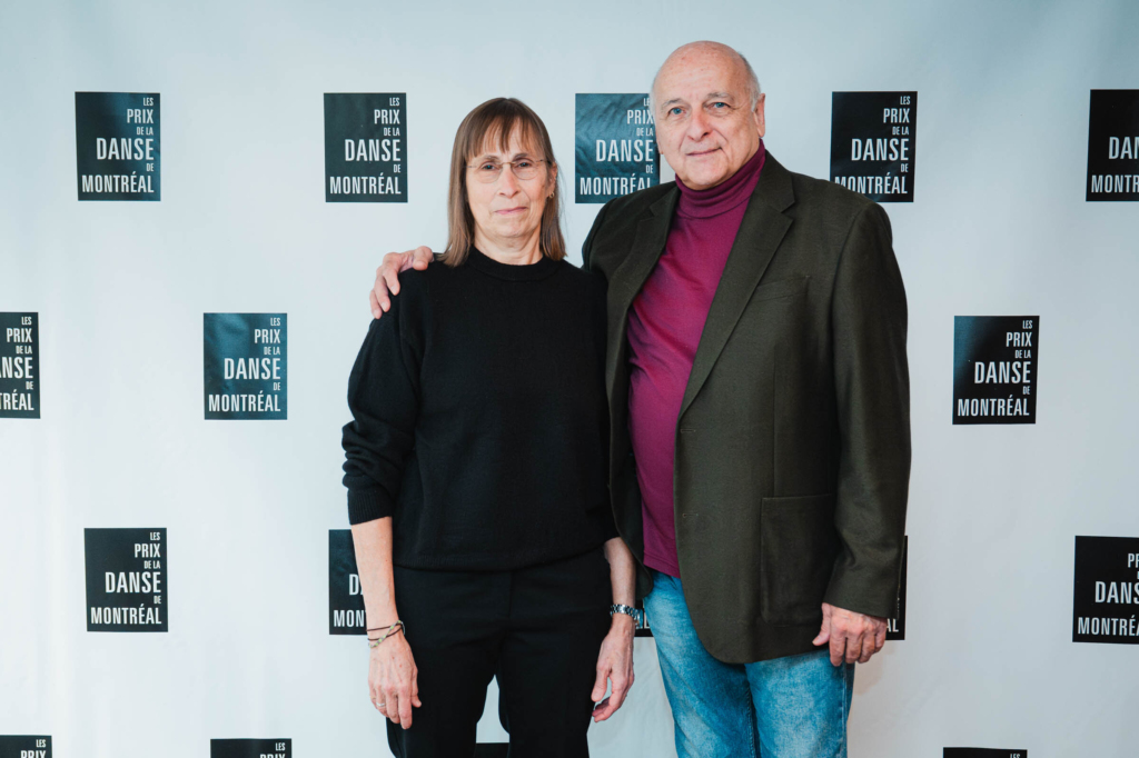 Andréanne Moreau — membre du comité exécutif et responsable des ressources humaines, de la culture, du patrimoine, du design et de la langue française à la Ville de Montréal — et Sylvie Cordeau — vice-présidente de la philanthropie et des commandites chez Québecor — ont remis ce prix prestigieux à la compagnie belge Peeping Tom pour Triptych, présenté par Danse Danse au Théâtre Maisonneuve en avril 2025.