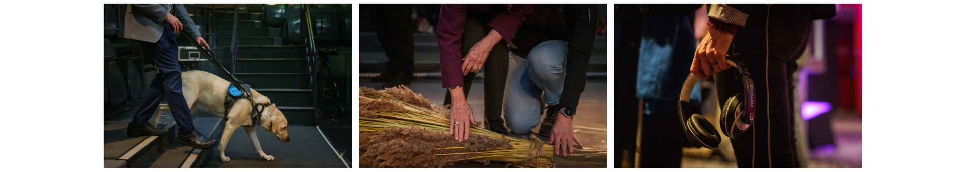 Suivez le parcours des personnes aveugles ou semi-voyantes qui ont assisté au spectacle L'effrittement des parades d'Alan Lake, présenté à Danse Danse en octobre 2021.
